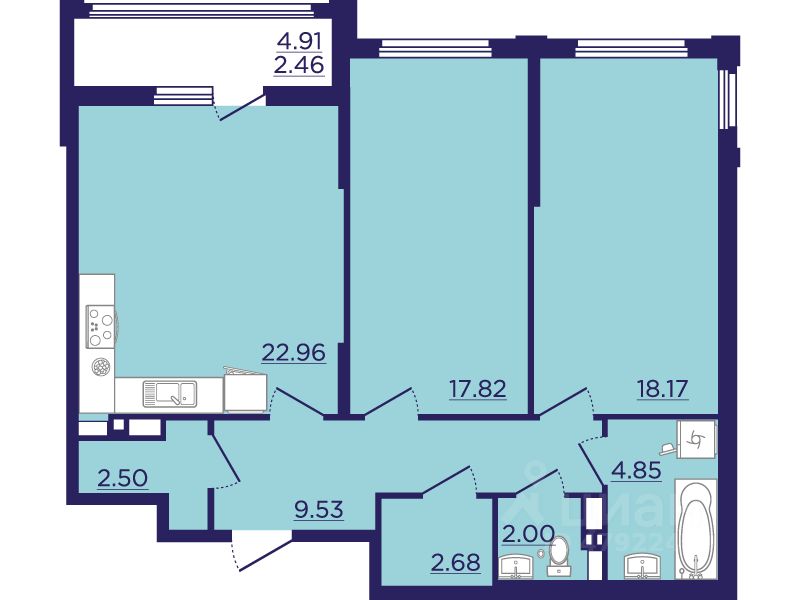 Общая площадь82,97 м2