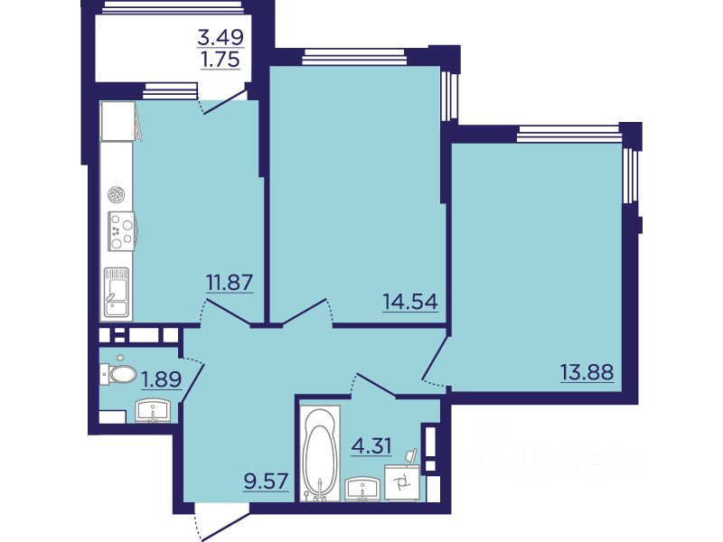 Общая площадь57,8 м2