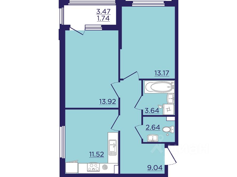 Общая площадь55,67 м2