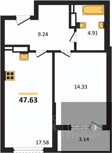 Жилая площадь14,3 м2