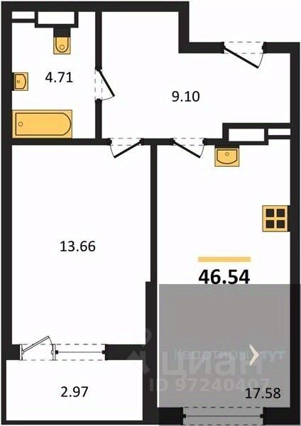 Общая площадь46,99 м2
