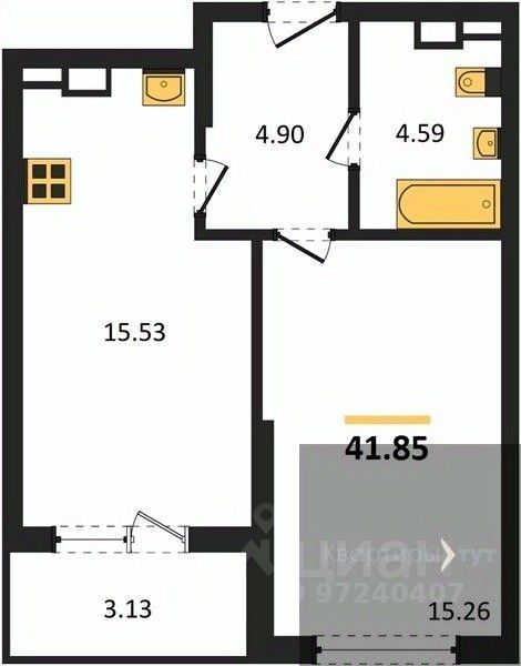 Жилая площадь15,3 м2