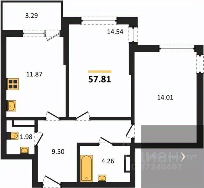 Общая площадь57,95 м2