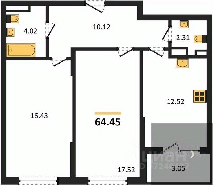 Общая площадь64,52 м2