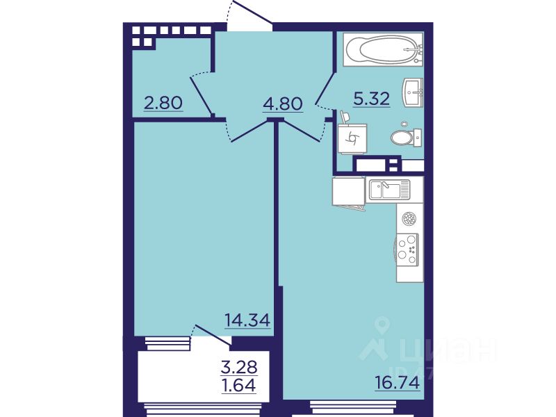 Жилая площадь14,3 м2