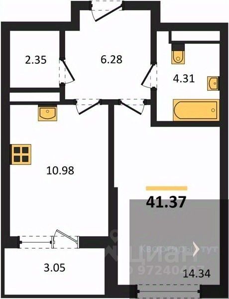 Общая площадь41,37 м2