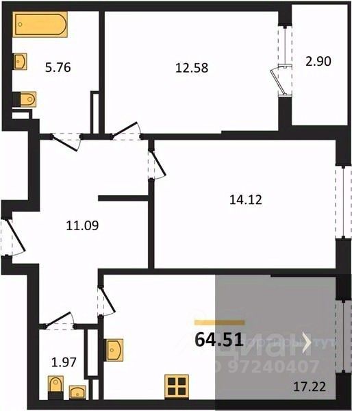 Общая площадь64,51 м2