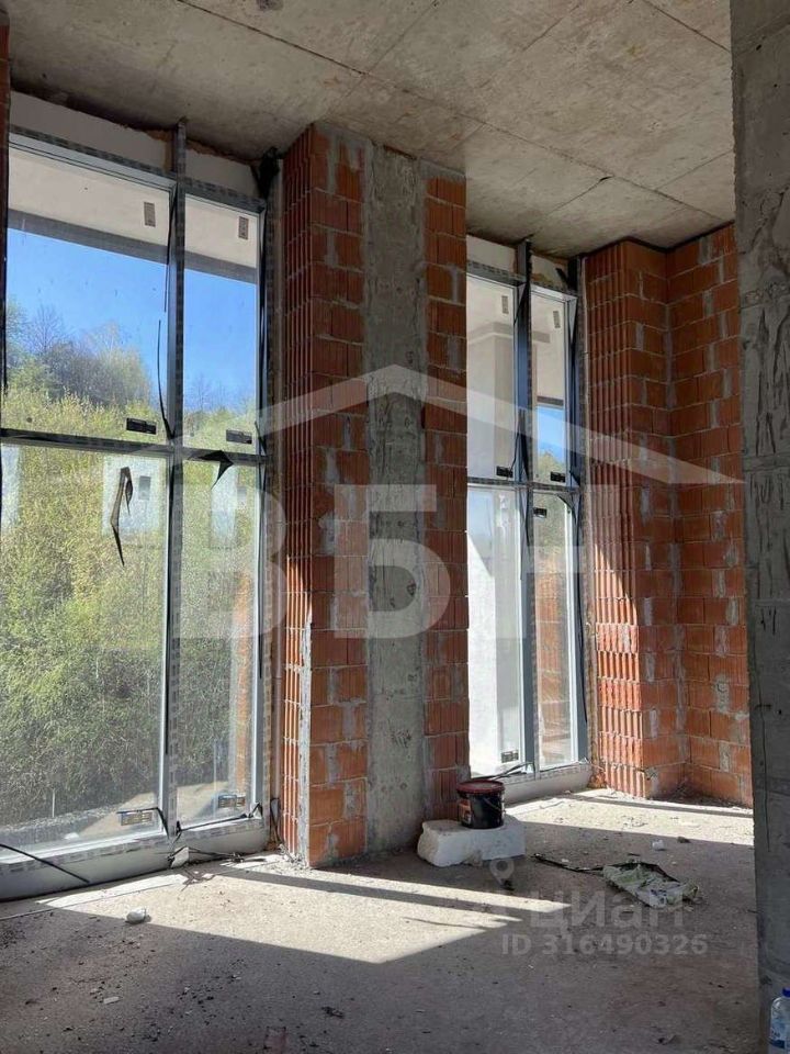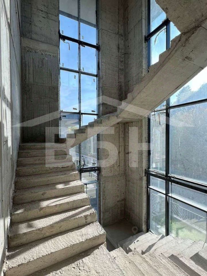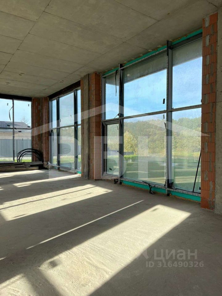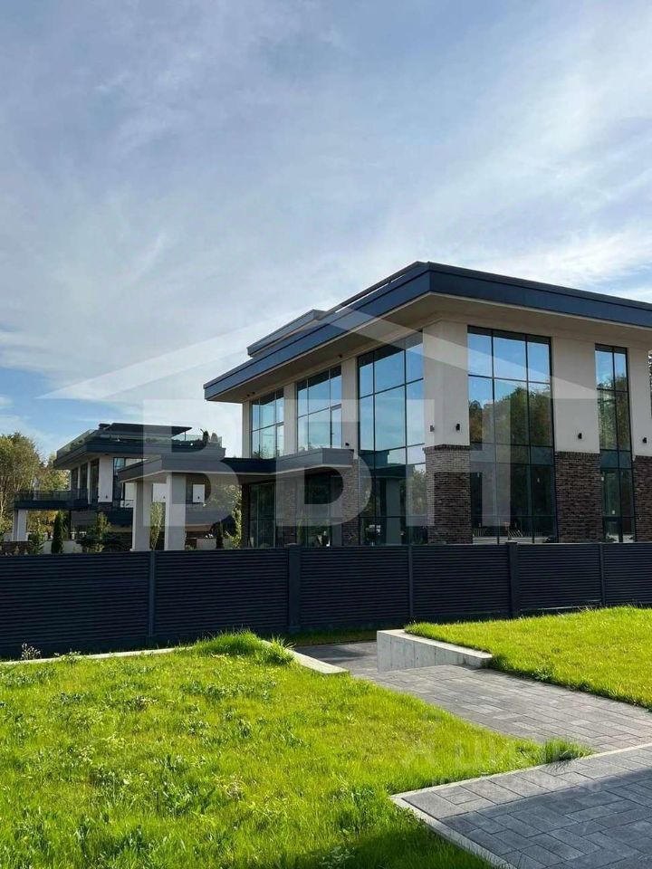 Коттедж в двух уровнях: 1 этаж-холл, хоз помещение, гардеробная, кухня, большая гостиная, с/у, котельная, 2-этаж 4 спальни, с/у. Материал стен - монолит. Крышу дома возможно использовать как зону отдыха (шезлонги, диваны, зонты). Участок благоустроен. Сделана подпорная стена. Коммуникации в поселке (газ. электричество), подъездные пути асфальт в поселке. В стоимость входит панорамное остекление, фасад премиум класс