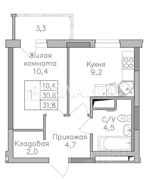 Общая площадь31,8 м2