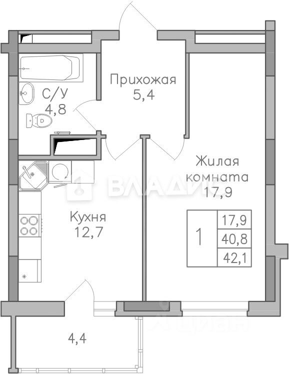 Общая площадь42 м2