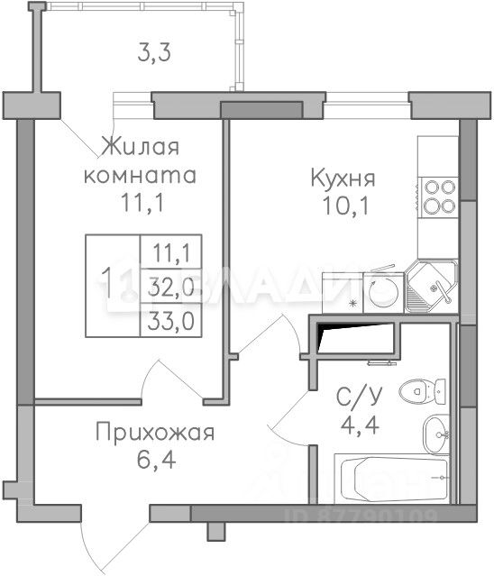 Общая площадь33,1 м2
