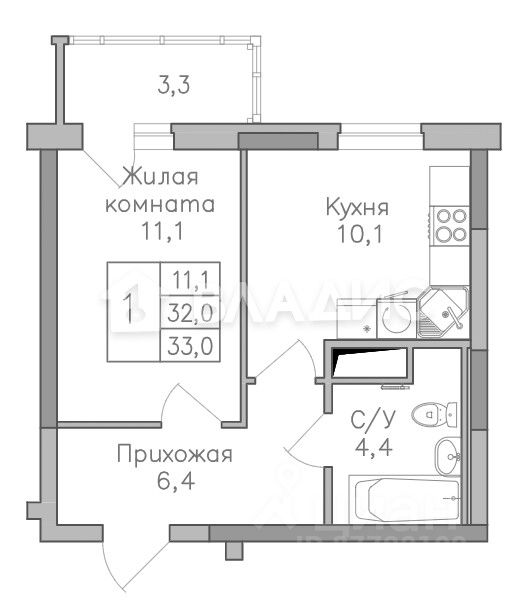 Жилая площадь11,1 м2