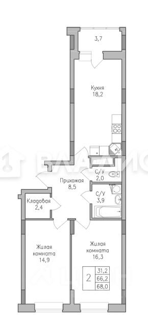 Общая площадь66 м2