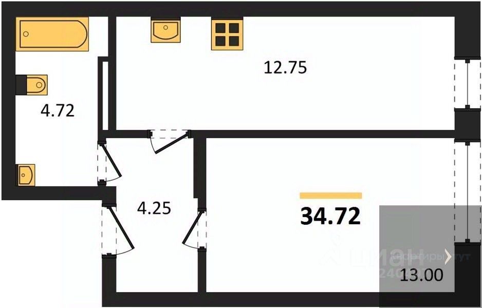 Общая площадь34,72 м2