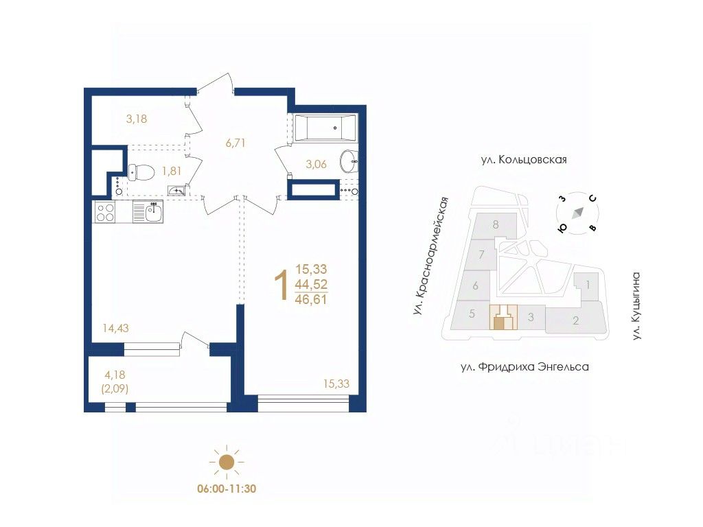 Строительная компания ''ВЫБОР'' предлагает купить однокомнатную квартиру в ''Дом на Фридриха Энгельса'' в Воронеже.