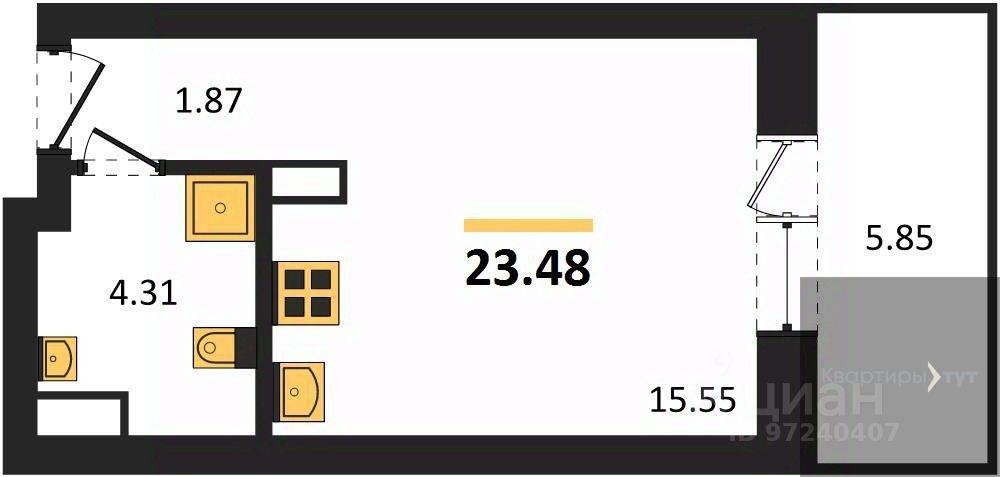 Студия: 23,48 кв.м., 5 этаж в комплексе Дом у Ротонды, 1 очередь, корп.1, сдача: 4кв. , этажей: 28, адрес Воронеж г., Транспортная ул., д. 58, Застройщик: ГК ПЕРВОГРАД.