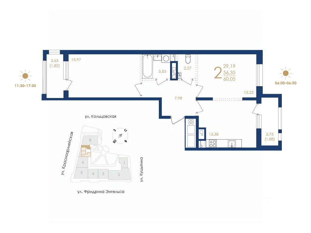Общая площадь60,05 м2