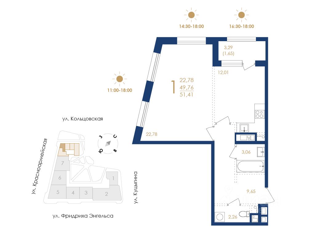 Общая площадь51,41 м2
