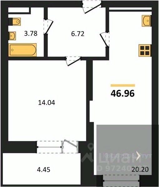 Квартира: 1 к 46,96 кв.м., 5 этаж в комплексе Дом у Ротонды, 1 очередь, корп.1, сдача: 4кв. , этажей: 28, адрес Воронеж г., Транспортная ул., д. 58, Застройщик: ГК ПЕРВОГРАД.