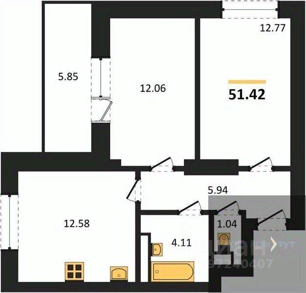Квартира: 2 к 51,42 кв.м., 8 этаж в комплексе Дом у Ротонды, 1 очередь, корп.1, сдача: 4кв. , этажей: 28, адрес Воронеж г., Транспортная ул., д. 58, Застройщик: ГК ПЕРВОГРАД.