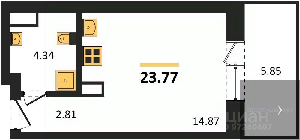 Студия: 23,77 кв.м., 13 этаж в комплексе Дом у Ротонды, 1 очередь, корп.1, сдача: 4кв. , этажей: 28, адрес Воронеж г., Транспортная ул., д. 58, Застройщик: ГК ПЕРВОГРАД.
