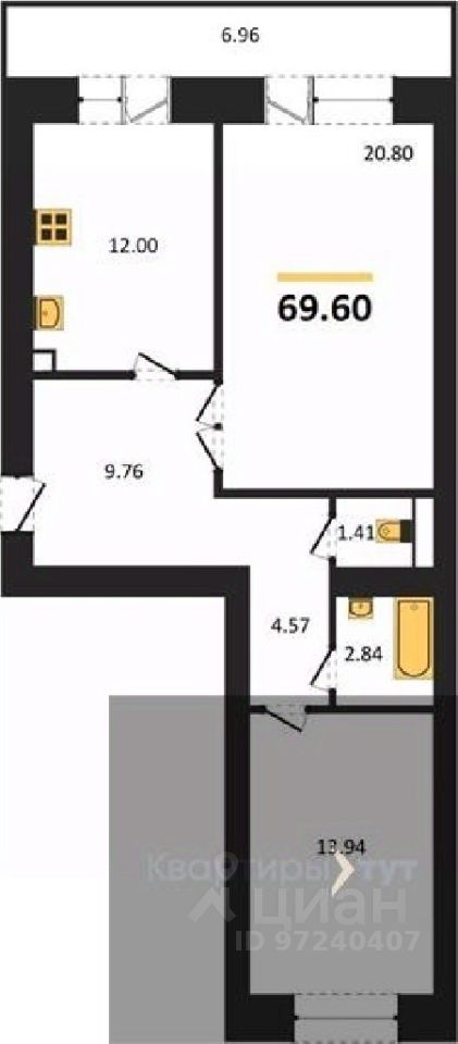 Общая площадь69,6 м2