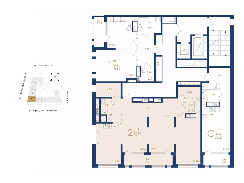 Общая площадь92,31 м2
