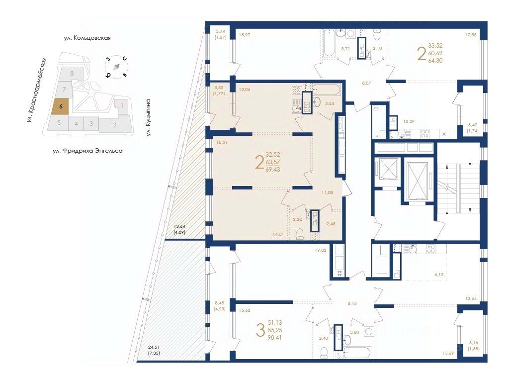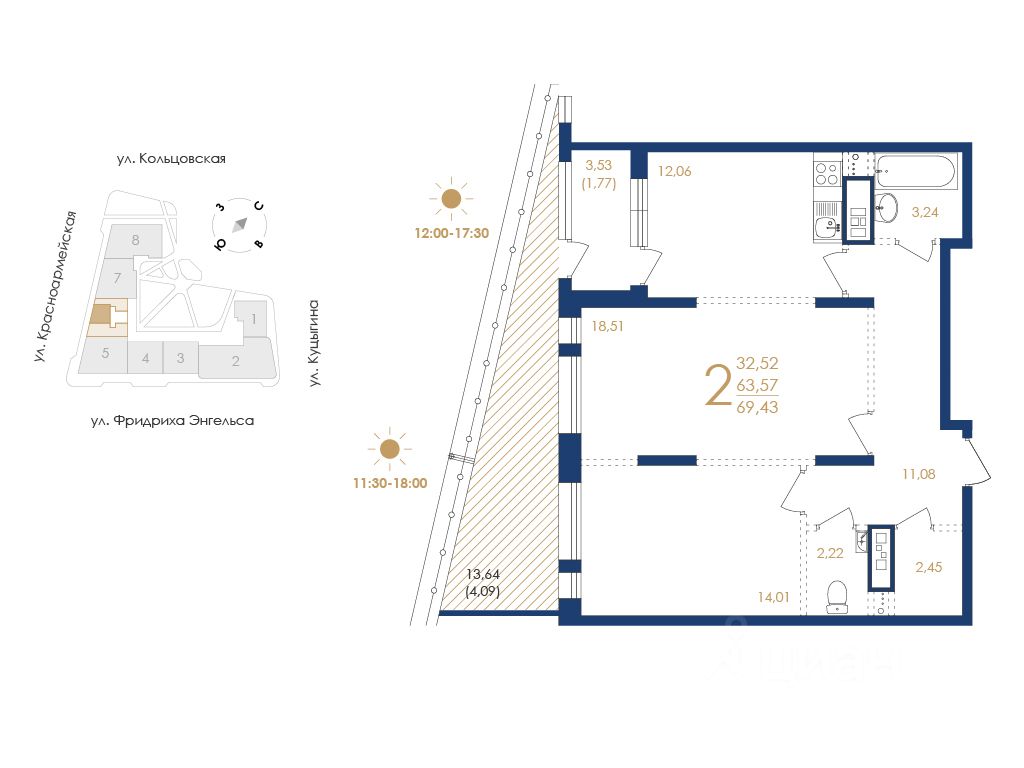 Общая площадь69,43 м2