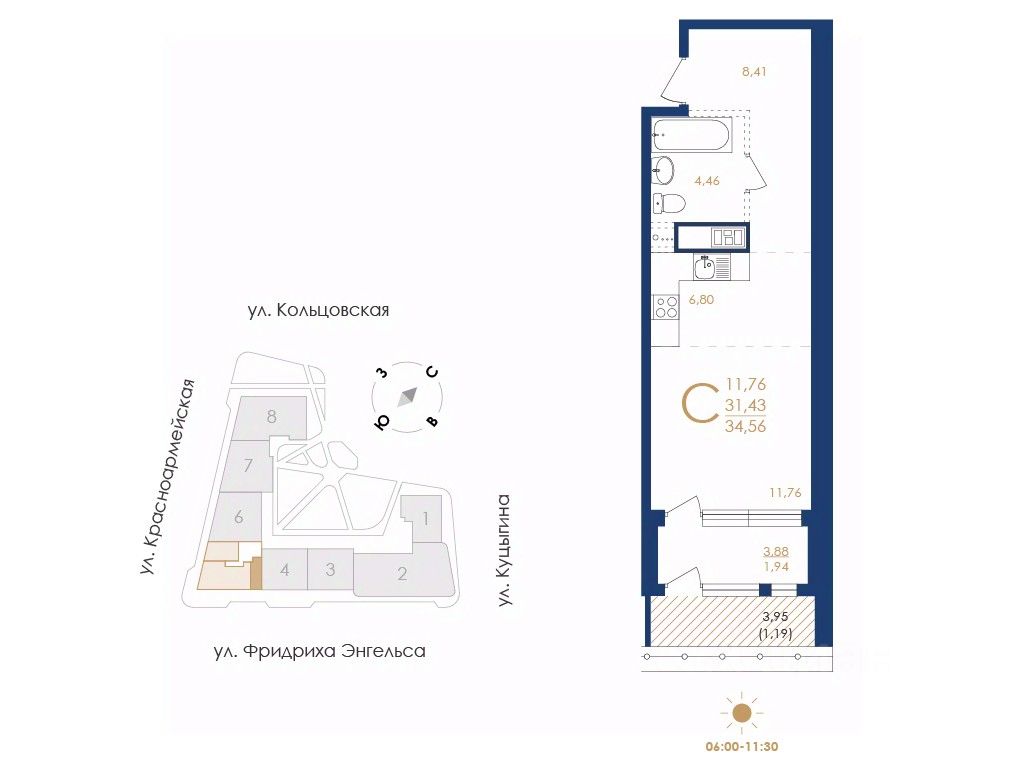 Общая площадь34,56 м2