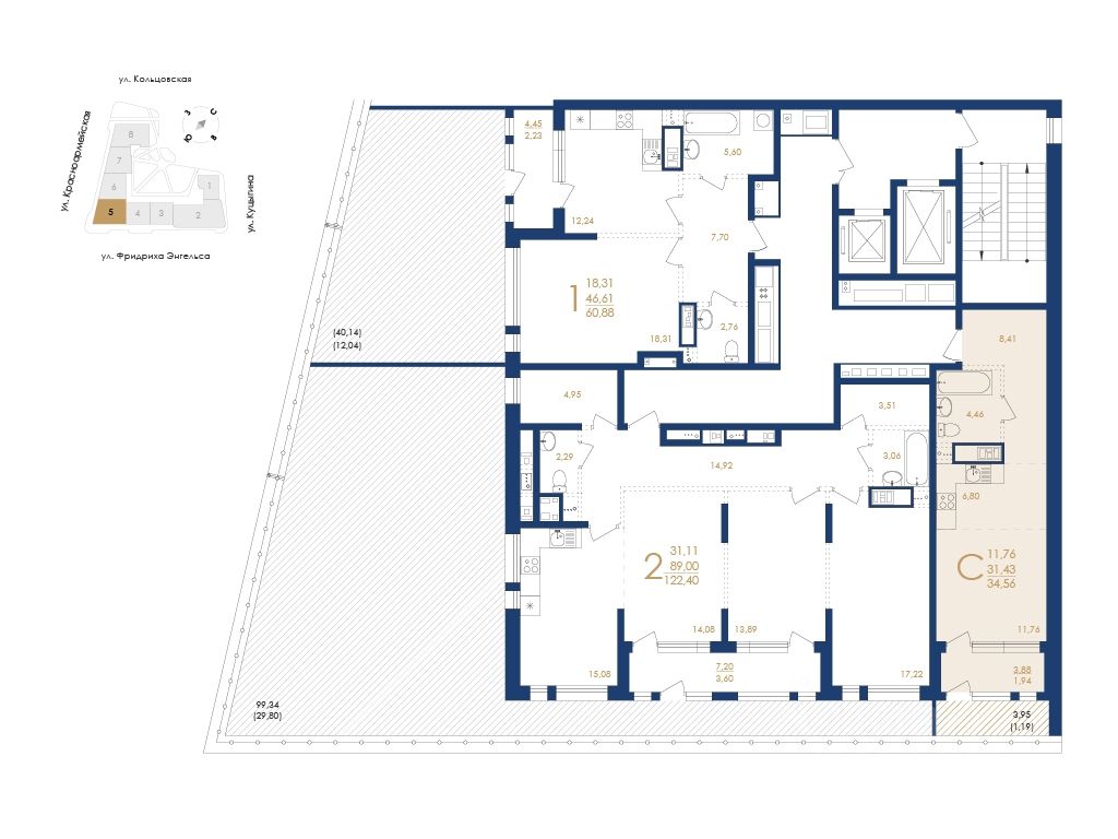 - Переменная этажность: 6 17 - Площадь квартир: от 29,89 до 127,29 кв. м - Площадь террас: от 2,24 до 99,34 кв.
