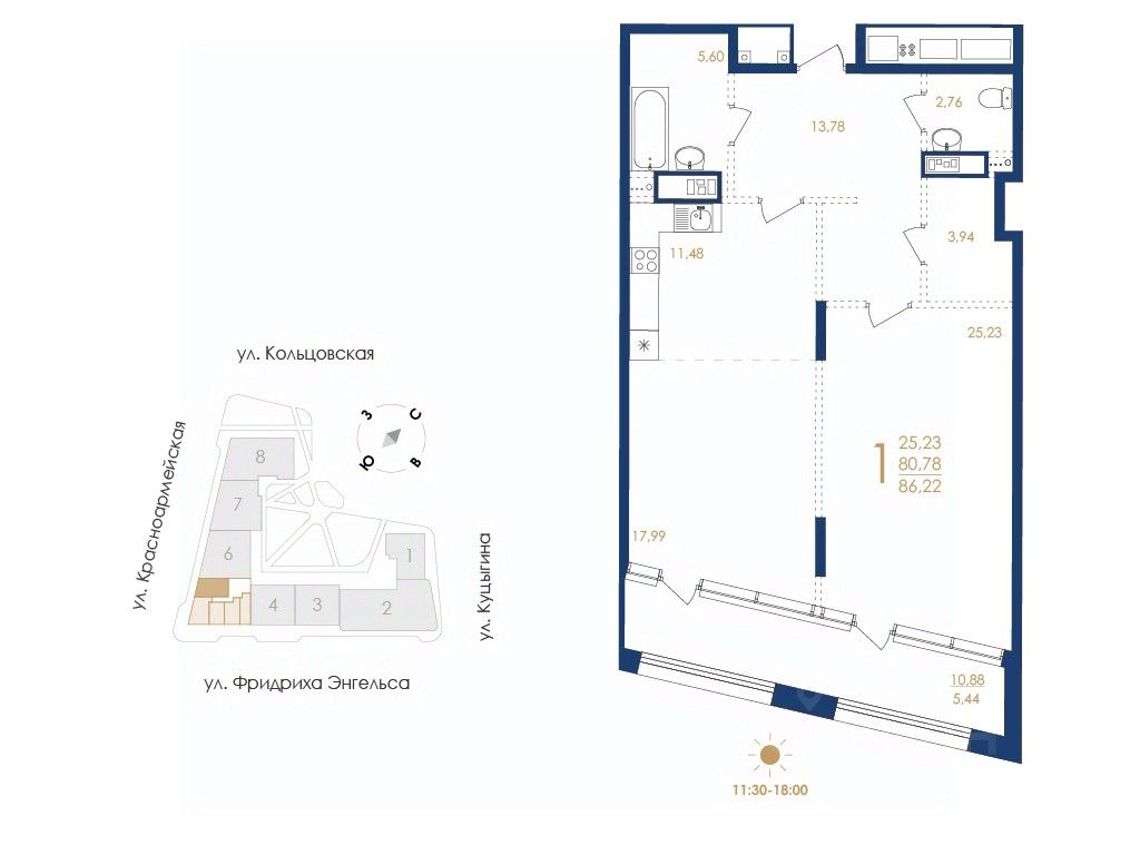 Общая площадь86,22 м2