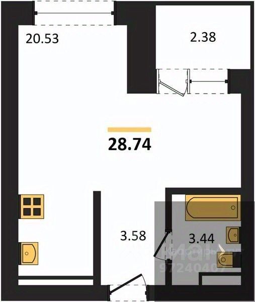 Студия: 28,74 кв.м., 9 этаж в комплексе Дом у Ротонды, 1 очередь, корп.1, сдача: 4кв. , этажей: 28, адрес Воронеж г., Транспортная ул., д. 58, Застройщик: ГК ПЕРВОГРАД.