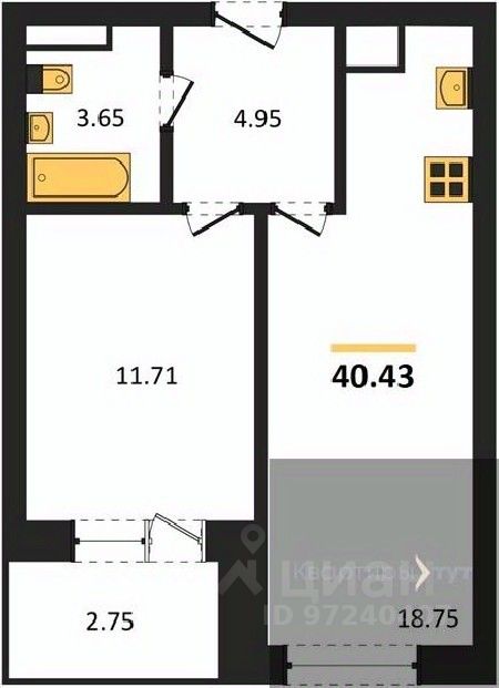Квартира: 1 к 40,43 кв.м., 15 этаж в комплексе Дом у Ротонды, 1 очередь, корп.1, сдача: 4кв. , этажей: 28, адрес Воронеж г., Транспортная ул., д. 58, Застройщик: ГК ГРАД.