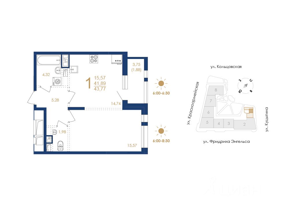 Строительная компания ''ВЫБОР'' предлагает купить однокомнатную квартиру в ''Дом на Фридриха Энгельса'' в Воронеже.