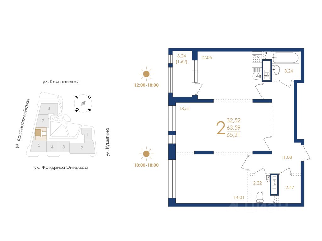 Строительная компания ''ВЫБОР'' предлагает купить двухкомнатную квартиру в ''Дом на Фридриха Энгельса'' в Воронеже.
