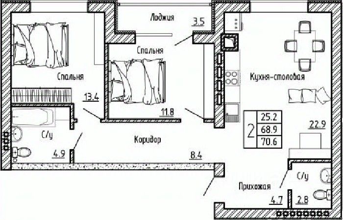 Продаётся 2-комнатная квартира в строящемся доме (Генерала Бакланова, 1 (Поз. 2)), срок сдачи: I-кв. 2026, общей площадью 70.6 кв.м., на 4 этаже. Жилой комплекс ''Дон'' расположен в селе Ямное Рамонского района Воронежской области, на расстоянии 10 км от города, в живописном экологически благоприятном месте в окружении лесного массива рядом с рекой Дон. Территория комплекса ''Дон'' занимает площадь 137 Га и разделена на четыре очереди строительства. Проектом предусмотрено возведение 200 000 кв.м комфортного и доступного жилья. К северной границе участка примыкает лес площадью 1,7 Га, к южной - земли Государственного Лесного Фонда, на востоке поле разделено для частной застройки. На западе в 300 метрах находится озеро Ольховое, менее чем в 100 метрах - озеро Близкое. Всего в двух километрах протекает река Дон. В 15 км от села Ямное находится международный аэропорт. В 6 км от коттеджного поселка - крупнейший в Воронеже торгово-развлекательный комплекс ''Сити-парк Град'' общей площадью более 200 тысяч кв.м, здесь есть все необходимое: продовольственный гипермаркет ''Ашан'', гипермаркет товаров для дома, множество магазинов, кинотеатр, детский парк развлечений, океанариум.