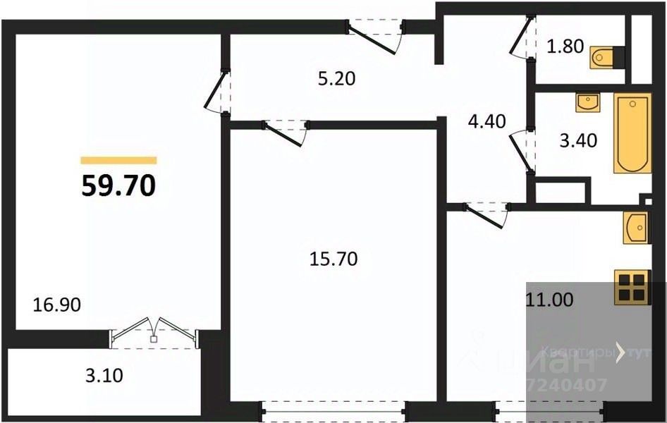 Общая площадь59,7 м2