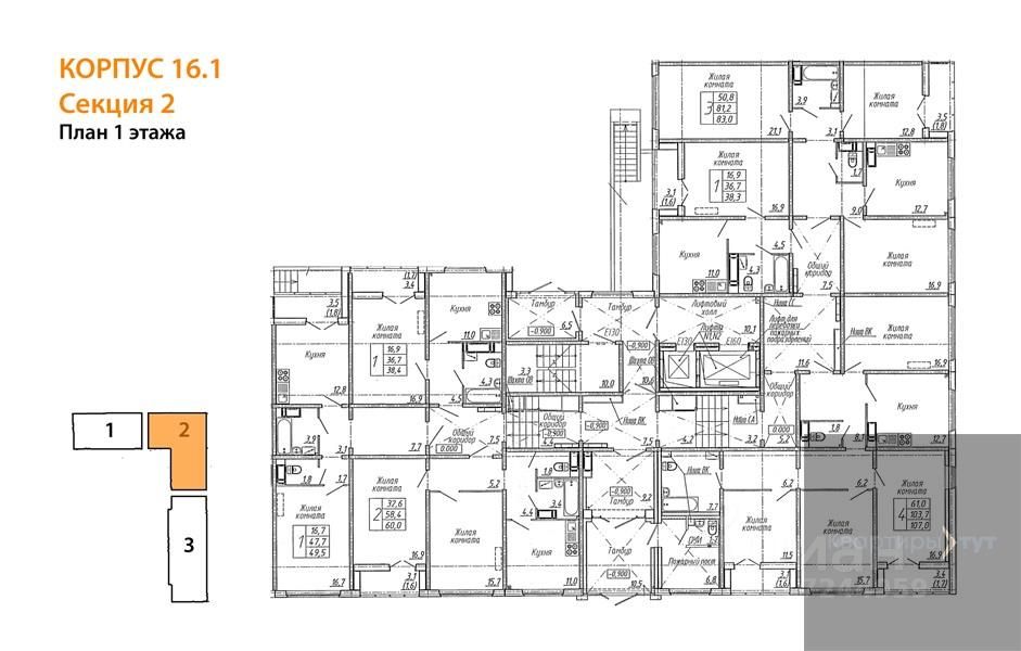 Квартира: 2 к 59,70 кв.м., 1 этаж в комплексе Яблоневые сады (ДСК), 1 очередь, корп.16.1, сдача: 1кв. , этажей: 17, адрес Воронеж г., Загоровского ул., д. 9/3, Застройщик: ДСК.