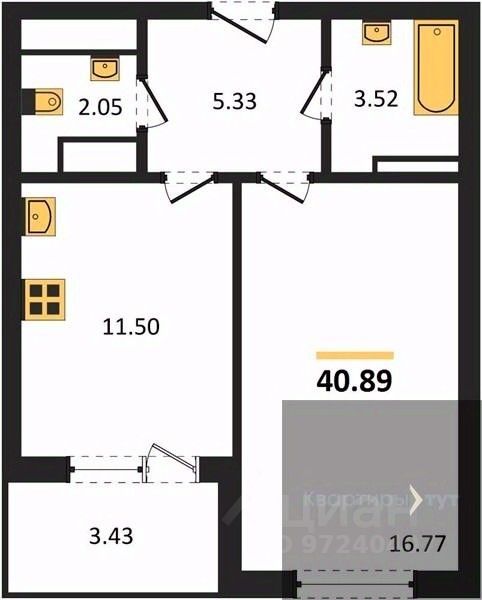 Общая площадь43,55 м2