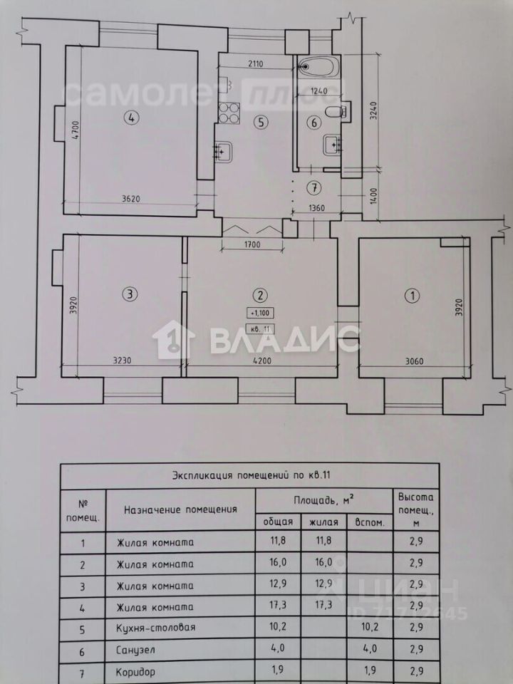 Код объекта: 1635183. Продаём просторную четырёхкомнатную квартиру в кирпичном доме по адресу: Индустриальный переулок, 2 в Воронеже!