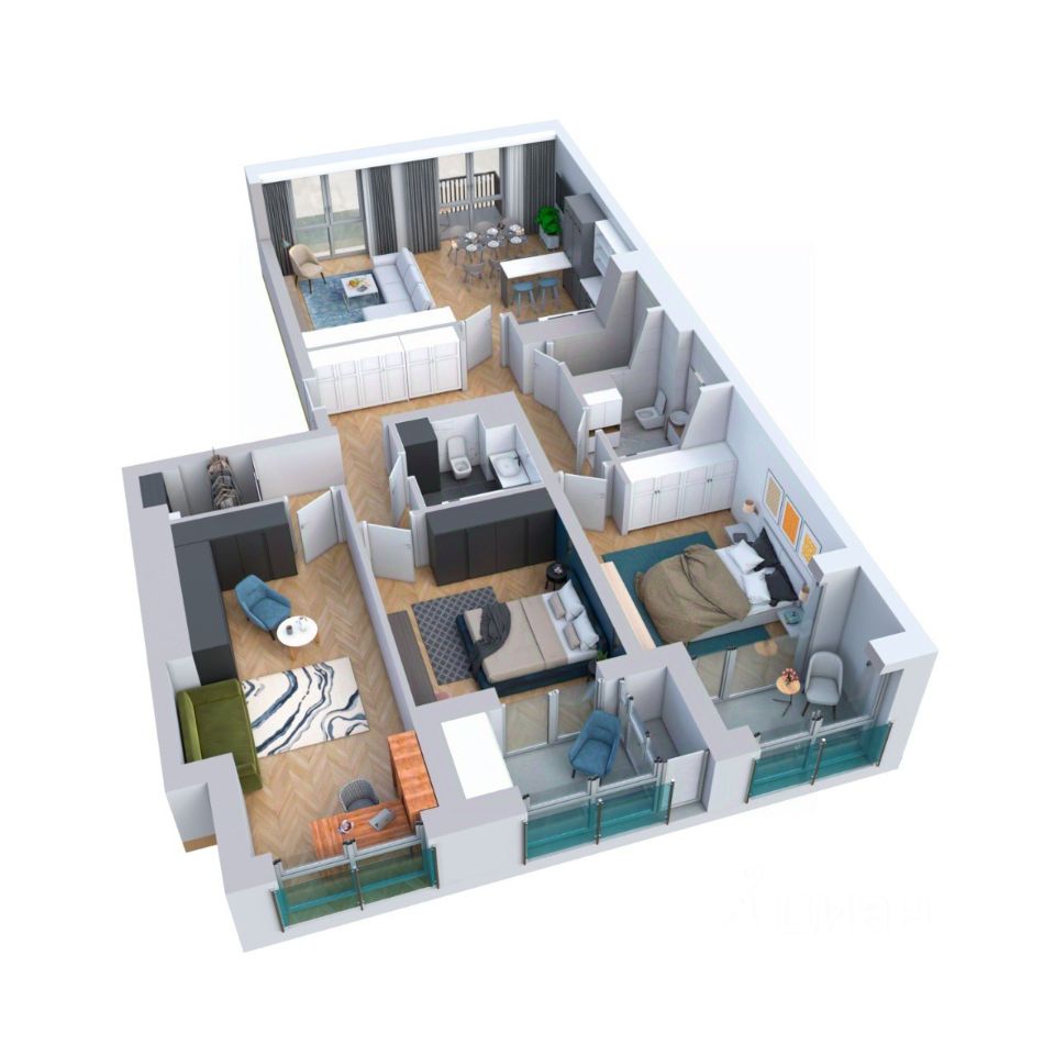 Квартира с театральной гостиной. Кухня-гостиная это самое востребованное помещение квартиры, поэтому к ней выдвигаются особые требования. Именно здесь проходят встречи с семьей и друзьями, отмечают важные даты это пространство подходит для событий любых форматов. Просторная обеденная зона позволит достойно принять гостей за торжественным столом.
