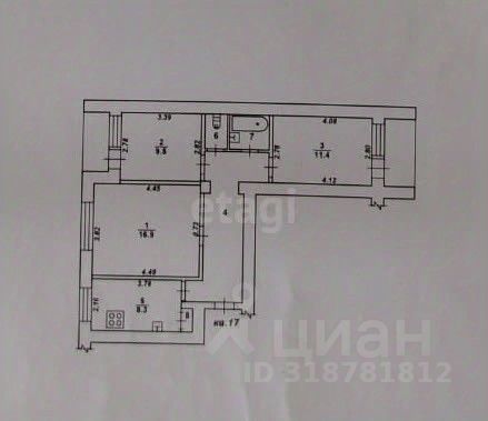 • Жилые комнаты: 16,9 м², 11,4 м² и 9,5 м²