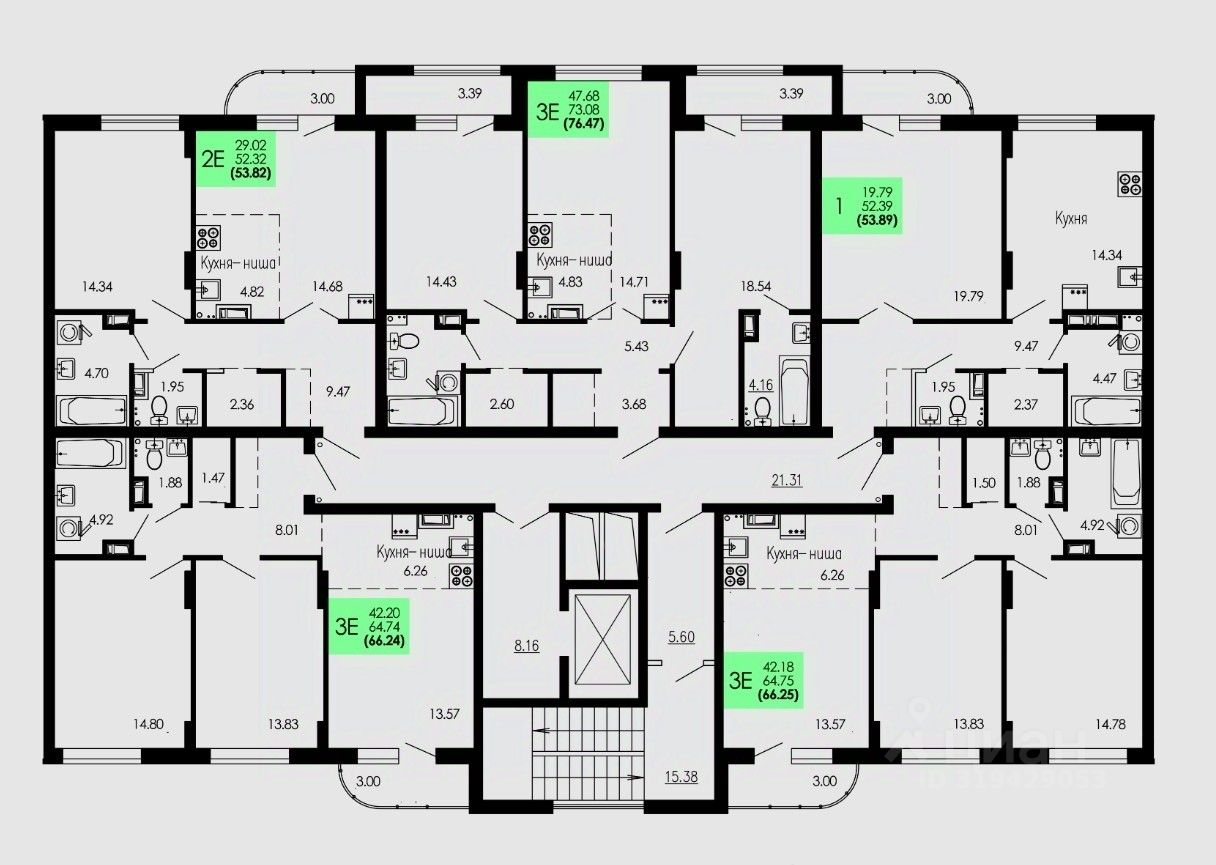 Общая площадь53,89 м2