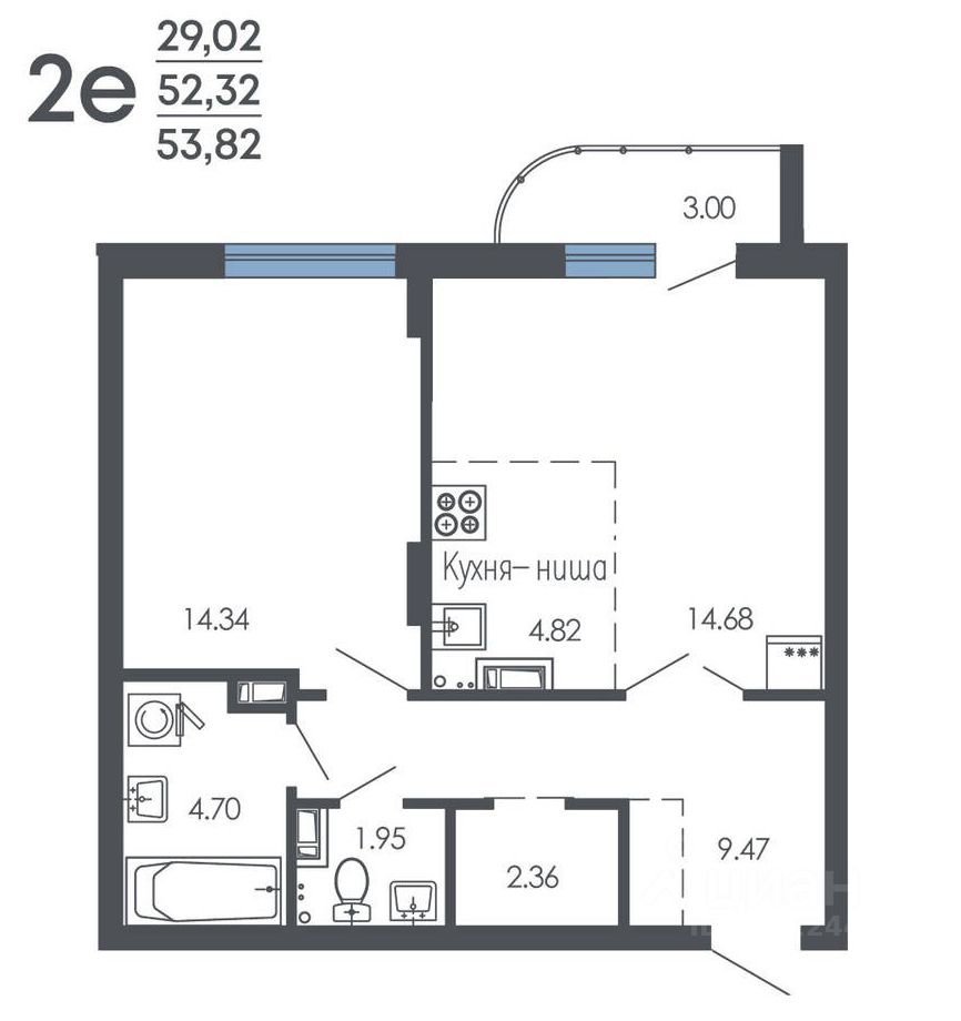 Общая площадь53,82 м2