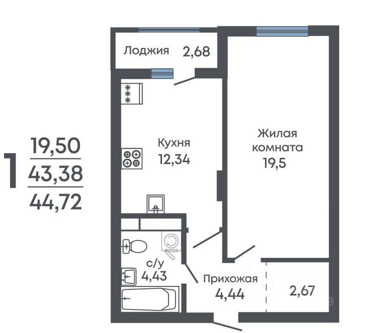 Общая площадь44,72 м2