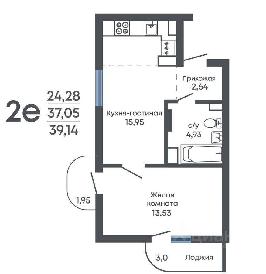 Общая площадь39,14 м2