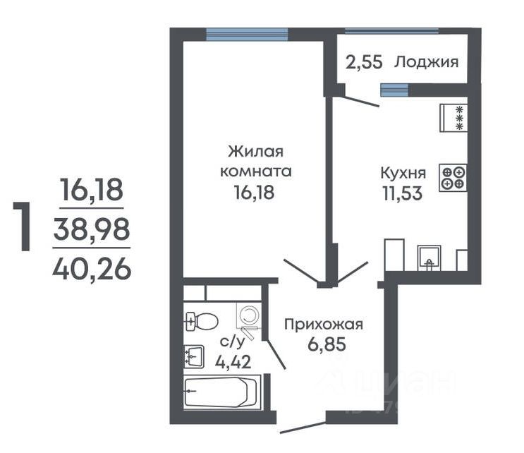 Общая площадь40,26 м2