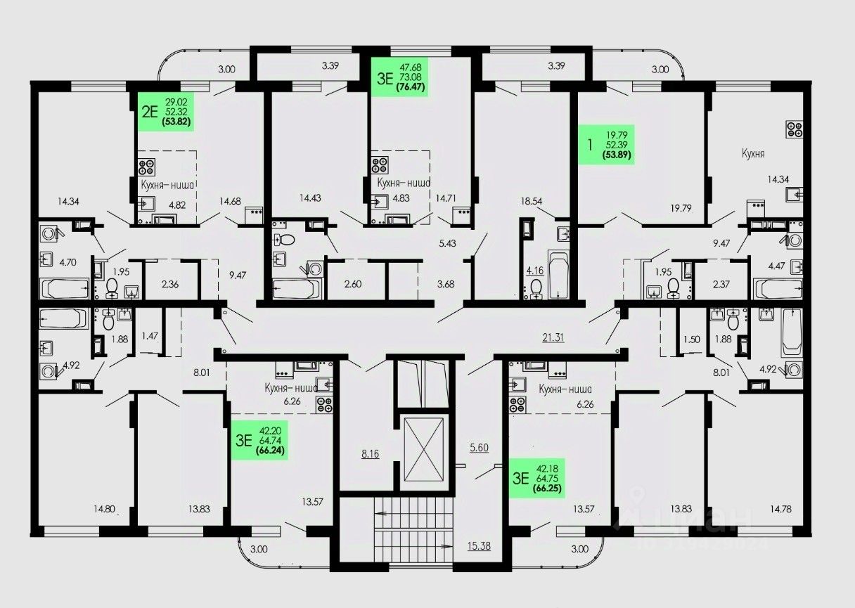 Общая площадь53,82 м2