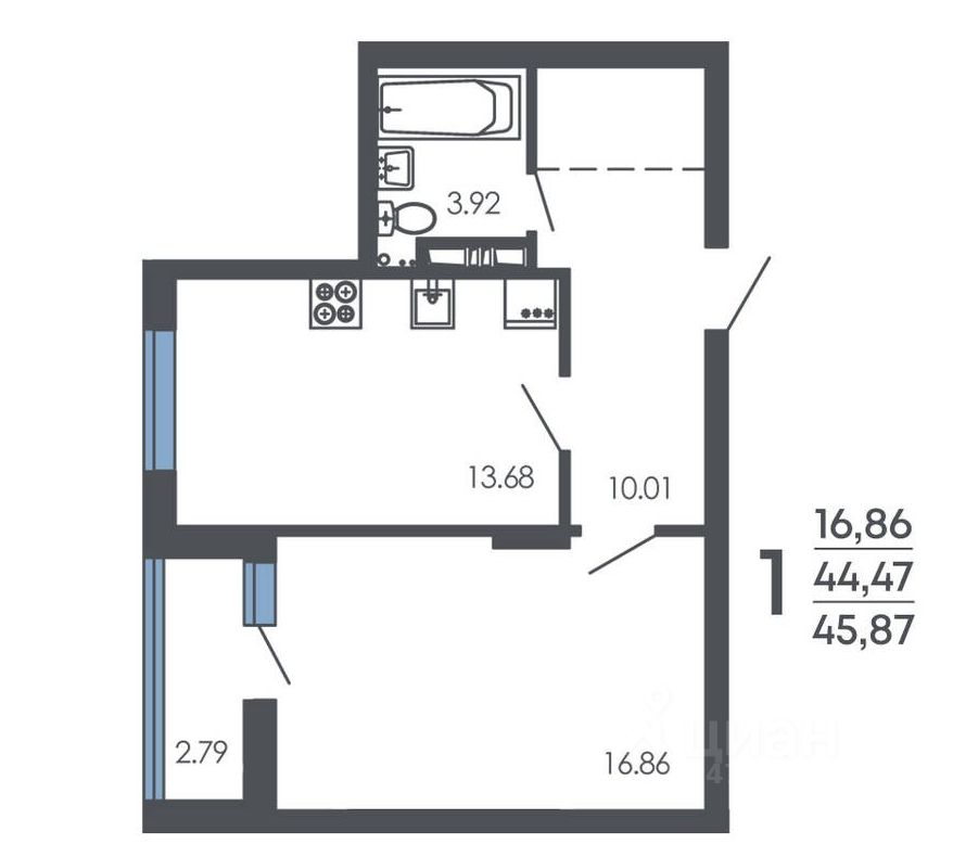 Общая площадь45,87 м2
