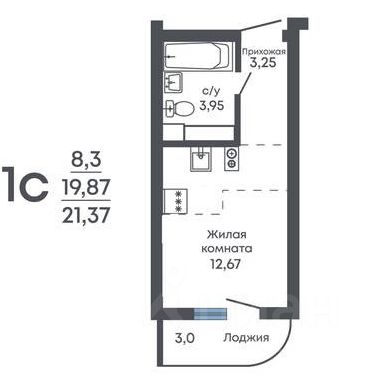 Общая площадь21,37 м2
